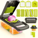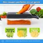 Préparez vos légumes, fruits et garnitures en un temps record grâce à notre trancheuse multifonction 16 en 1, pratique et sécurisée.